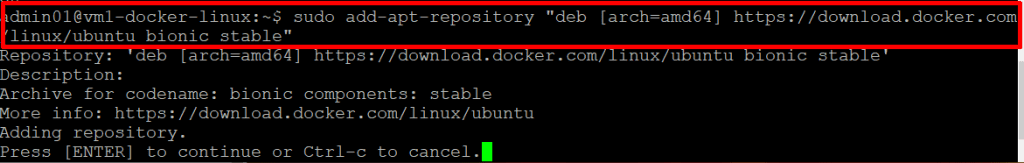 Copy Command: sudo add-apt-repository "deb [arch=amd64] https://download.docker.com/linux/ubuntu bionic stable"