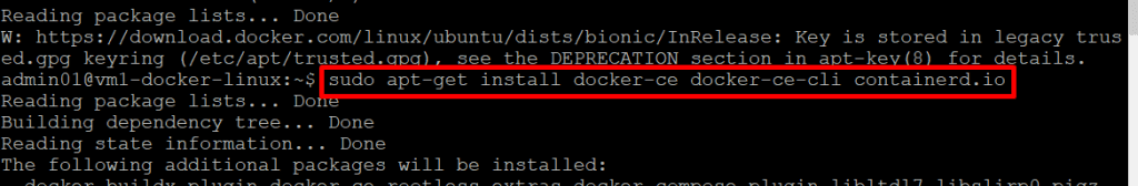 Copy Command: sudo apt-get install docker-ce docker-ce-cli containerd.io