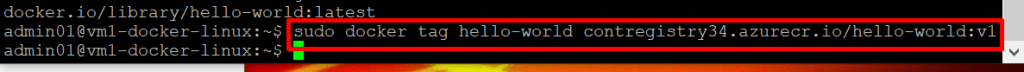 17. Return to your Linux VM session and run the following command to log in to your container registry. When prompted, enter the username and password you obtained earlier. Be sure to replace loginServer with your container registry’s login server name:
