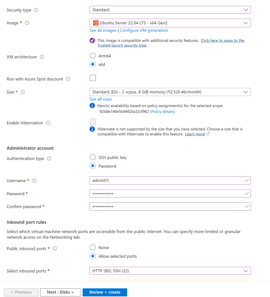 - Image: Select Ubuntu Server 20.04 LTS - x64 Gen2