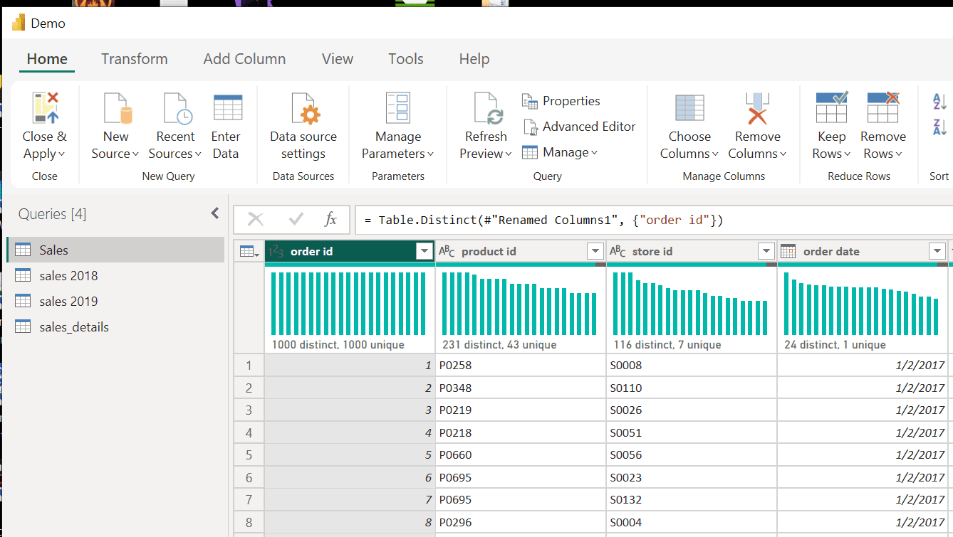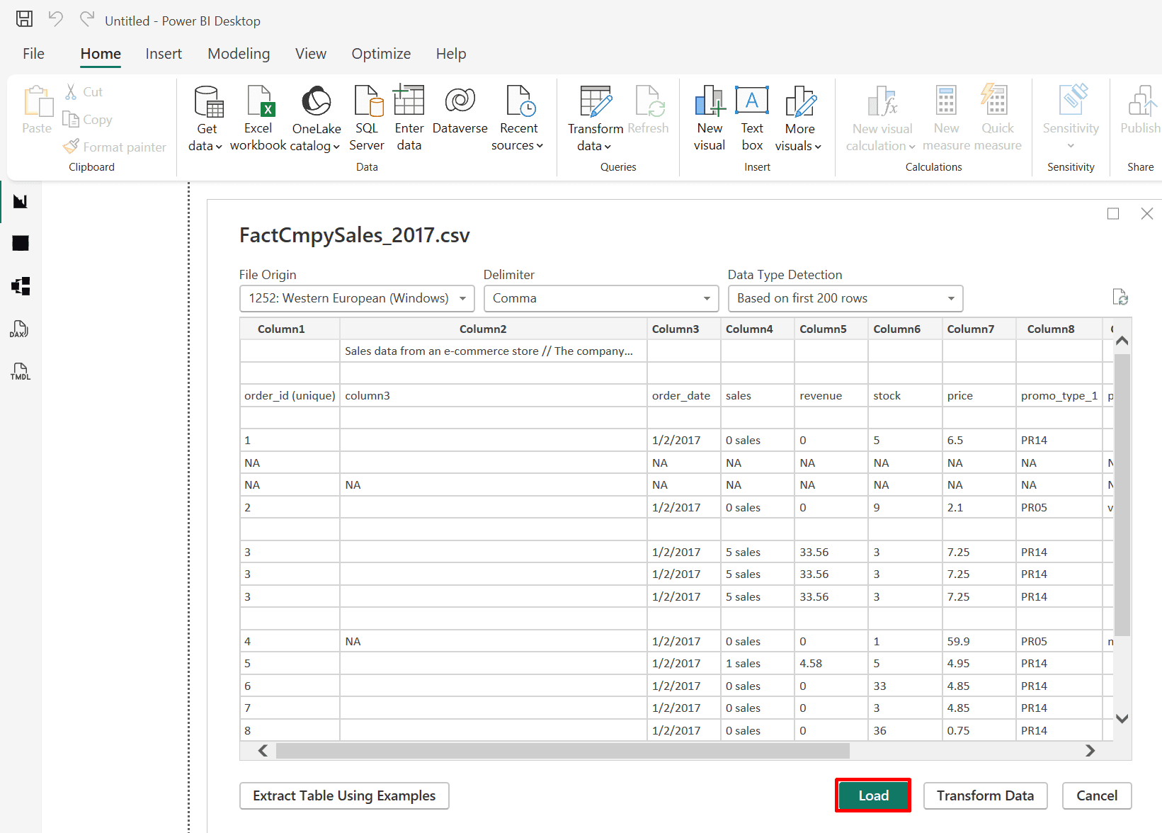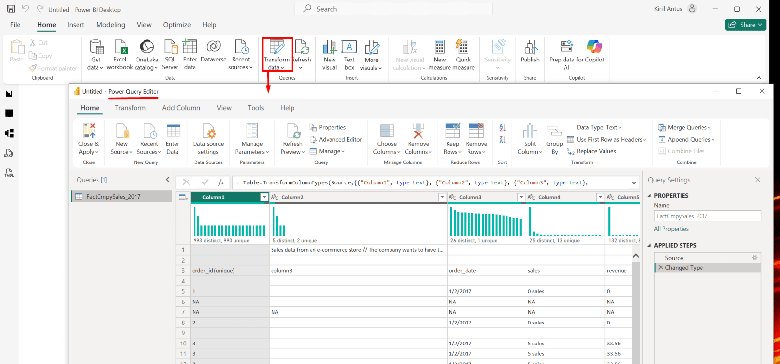 1. Click on "Transform data" to enter the Power Query editor.