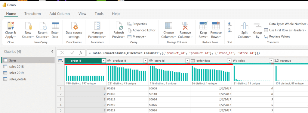 4. Promote the first row as a column header.