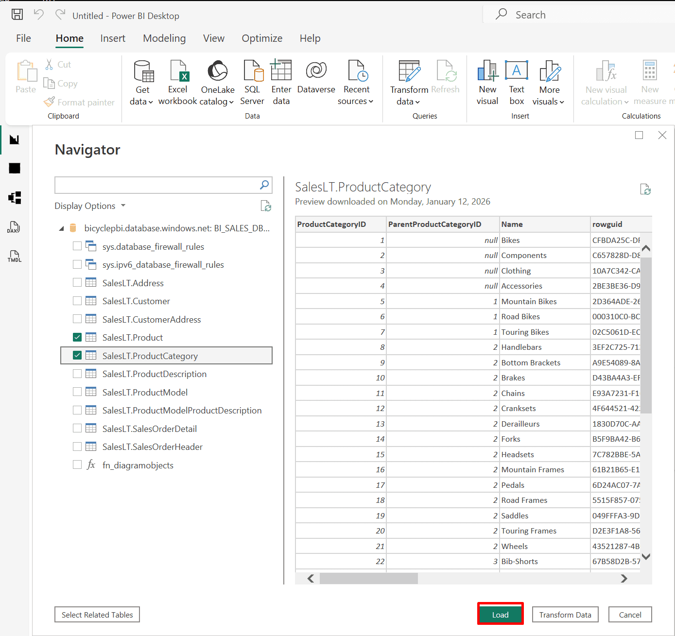 9. Importing Data from Folders and Azure SQL Database (Import or DirectQuery)