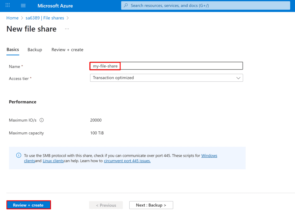 - Enter "sa783709" as the "Storage account name".