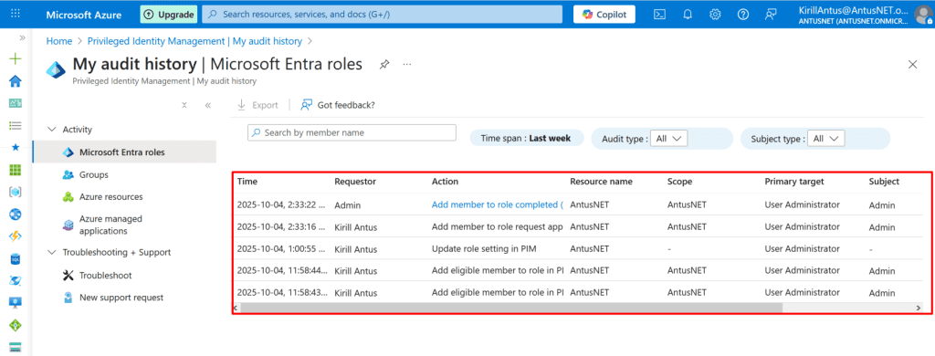 In this project, we’ll configure PIM to assign the User Administrator role with approval, set up a Log Analytics workspace, and enable PIM audit logging. We’ll then integrate Azure Monitor and Entra ID logs to achieve centralized monitoring and enhanced visibility of privileged role activities.
