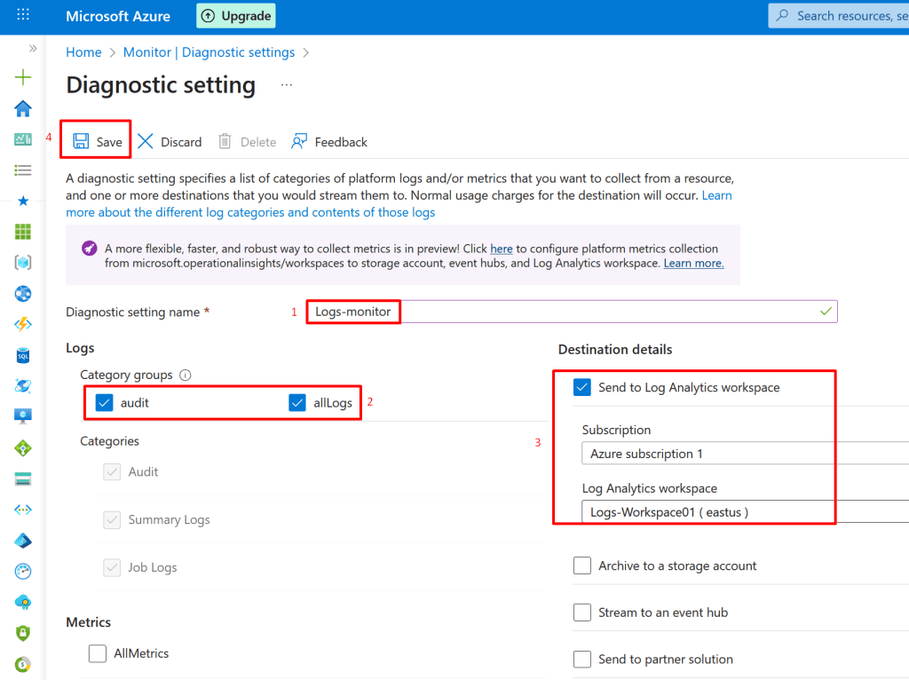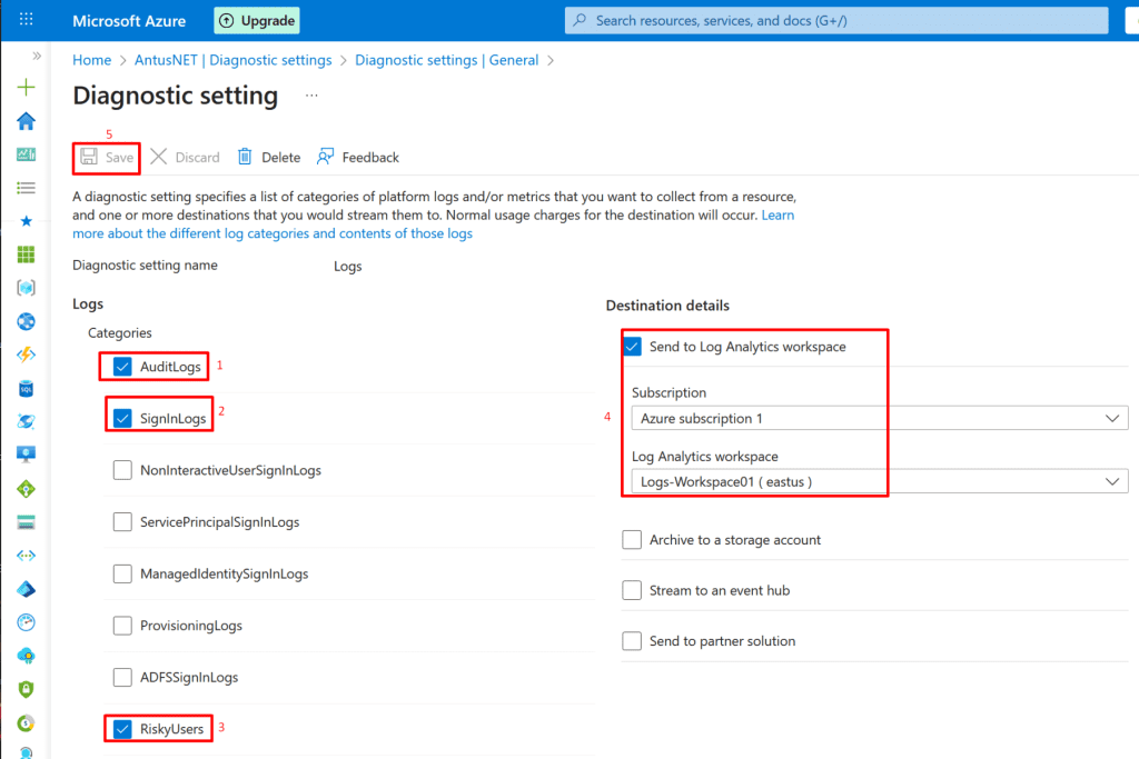 4. Integrating Monitor Logs and Entra ID Azure to Logs Analytics.