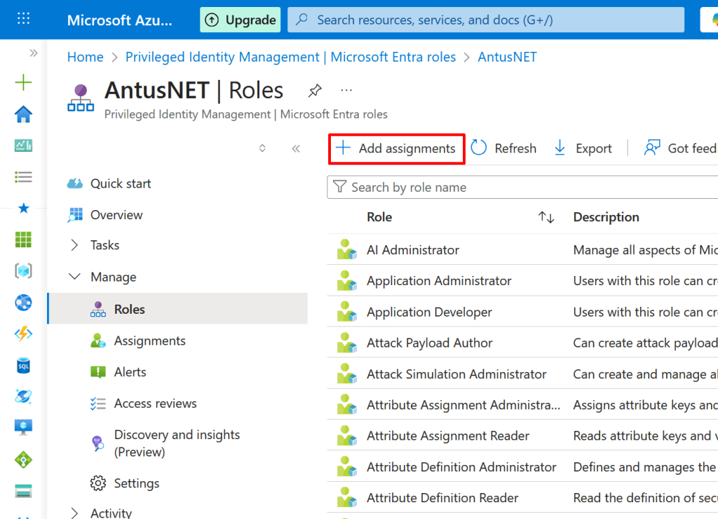 Note: Prefer Eligible in PIM to reduce standing privileges and enhance security.