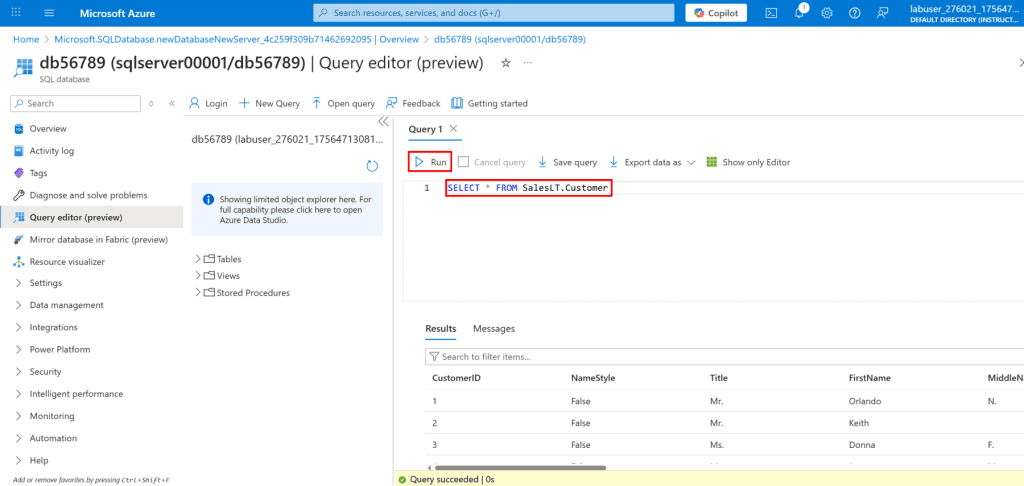 - On the Query editor (preview) page: Login: Ensure Admin01 is entered.