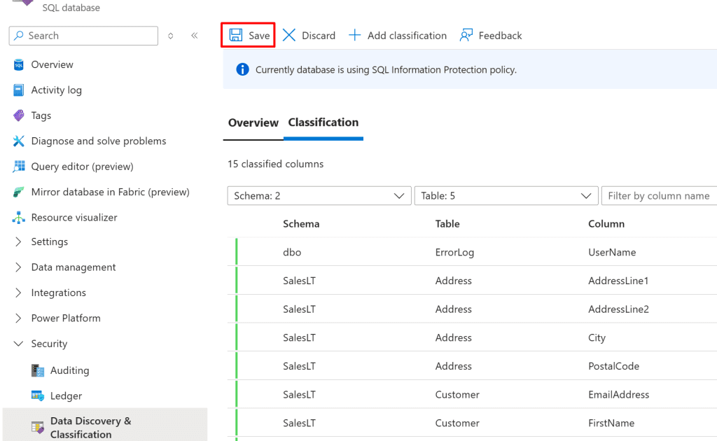 - Manage Data Discovery & Classification recommendations in Microsoft Defender for SQL to classify and protect sensitive data.