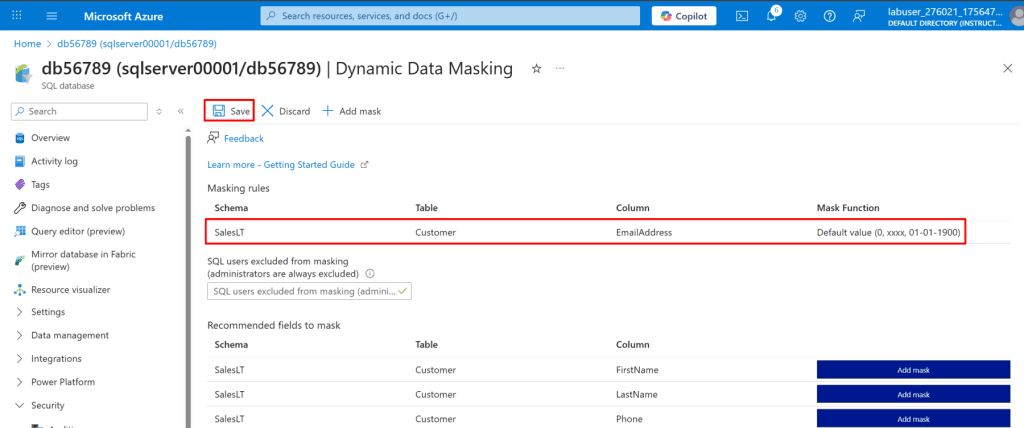 - Configure Dynamic Data Masking to limit exposure of sensitive information to non-privileged users.