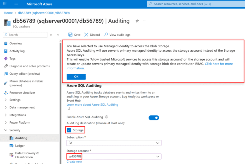 - Create a database and enable Database Auditing to monitor and log database activities.